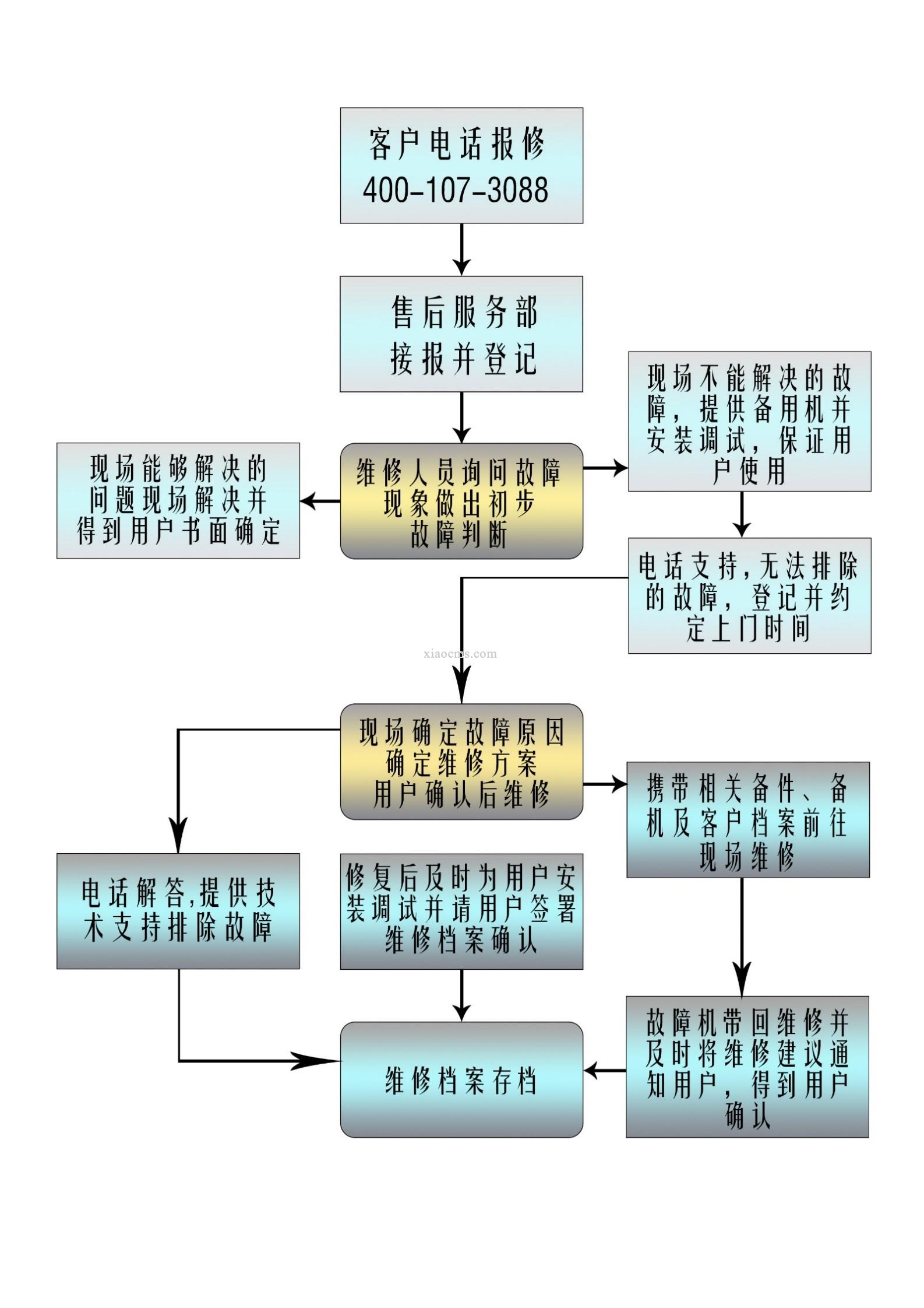 5:服務人員維修工作完成后要自檢、嚴格把關,確保維修質量,在質量保修期內,對客戶按正常操作及正常保養(yǎng)情況下出現(xiàn)的質量問題免費返修。